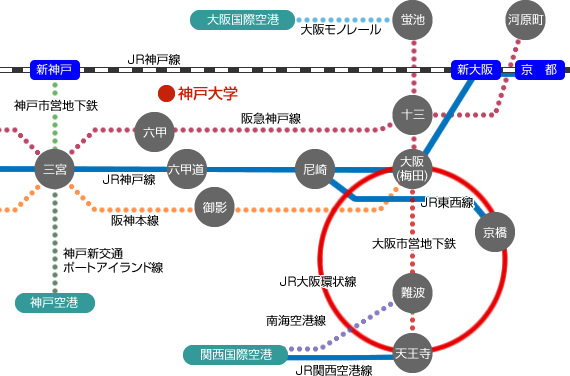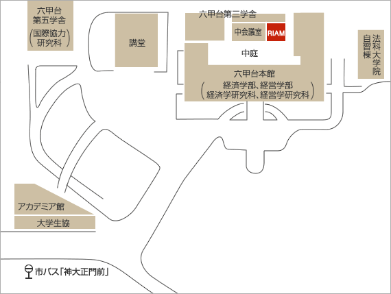 阪神「御影」駅、JR「六甲道」駅から、神戸市バス36系統「鶴甲団地」行乗車、「神大正門前」下車
